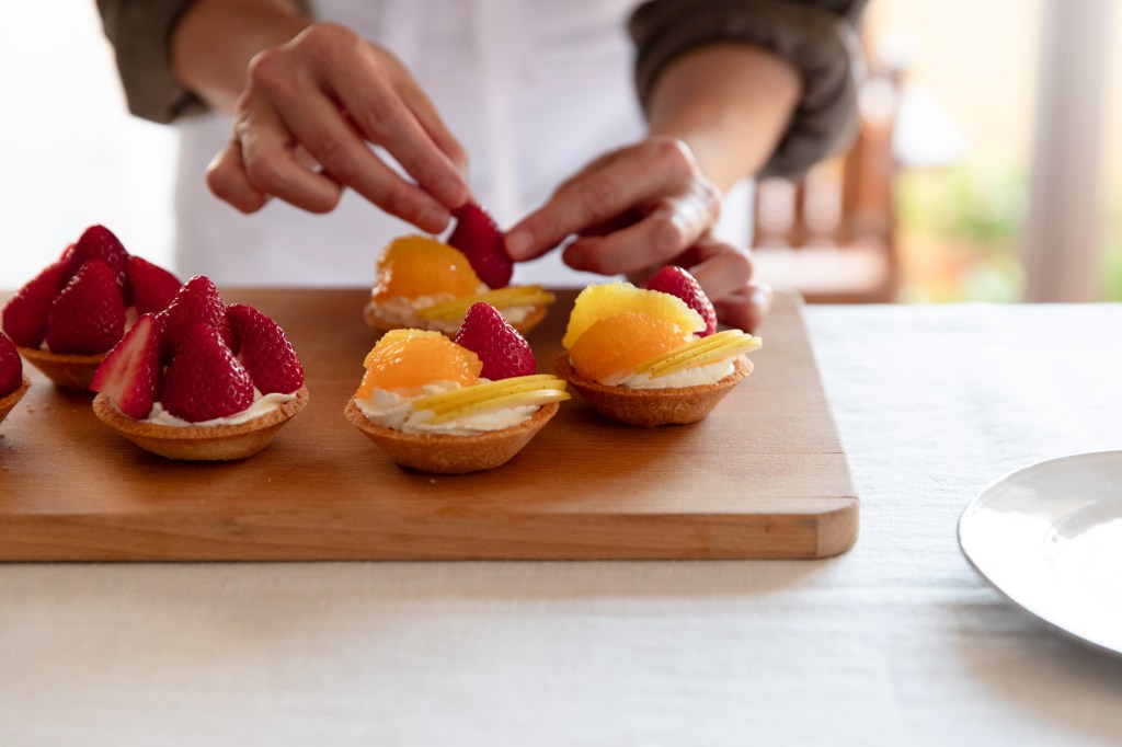 5月はグルテンフリーフルーツタルトレットの対面レッスンを複数回、開催しました。Kana’s Place では主に誰でもアクセスできるオンラインのレッスンを提供しています。でも味や食感の想像がつきにくいお菓子は、まず実際に食べていただきたい。今回できあがった、最高にサックサクのタルト生地とスウェーデンのお菓子で知った焼き込むマジパンの美味しさ、植物性だけで出せる風味。きっと言葉じゃ伝えきれないと思ったのです。