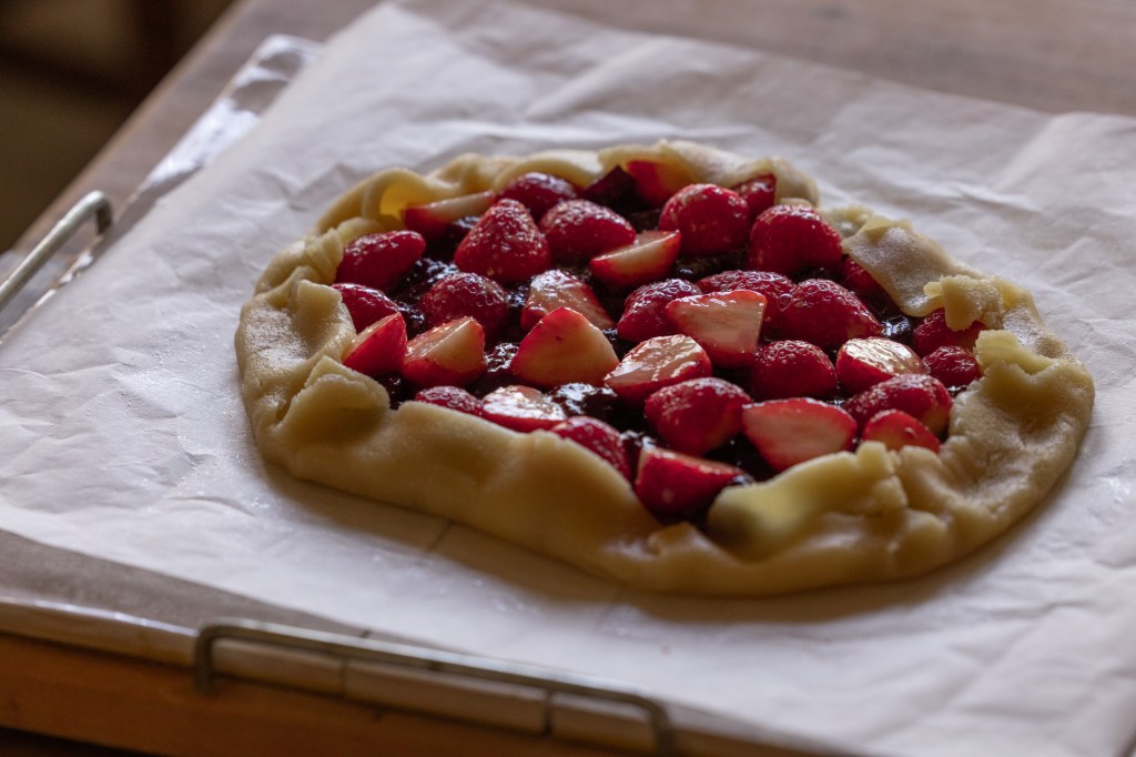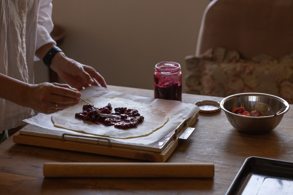 I truly believe that the fruit galette is the world’s most generous pie. It envelops a variety of fruits—even jam made from leftovers and fresh fruits that have past season’s peak—and transforms them into something both mouthwatering and visually stunning. The galette is forgiving and adaptable. Its rustic, freeform nature evokes a sense of relaxed conviviality, making it perfect for sharing with friends and family. There’s an intrinsic warmth to a galette, perhaps because the term “rustic” ignites a sense of comfort and ease.